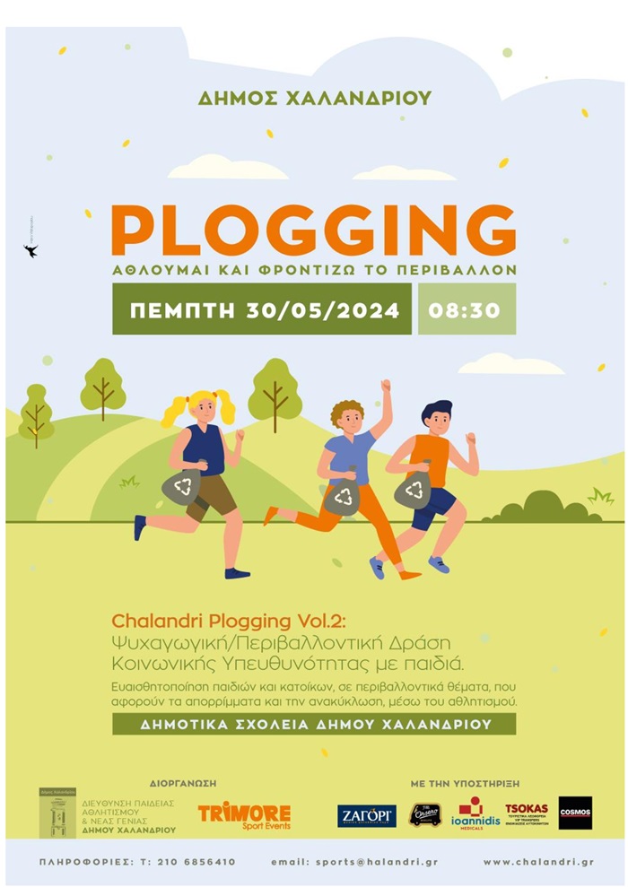 Επιστρέφει την Πέμπτη 30 Μαΐου 2024 στις 08:30, η πρωτότυπη δράση Plogging 2024 που διοργανώνει ο Δήμος Χαλανδρίου, καλώντας τα παιδιά σε ένα ακόμα συναρπαστικό παιχνίδι ευαισθητοποίησης στην προστασία του περιβάλλοντος.
