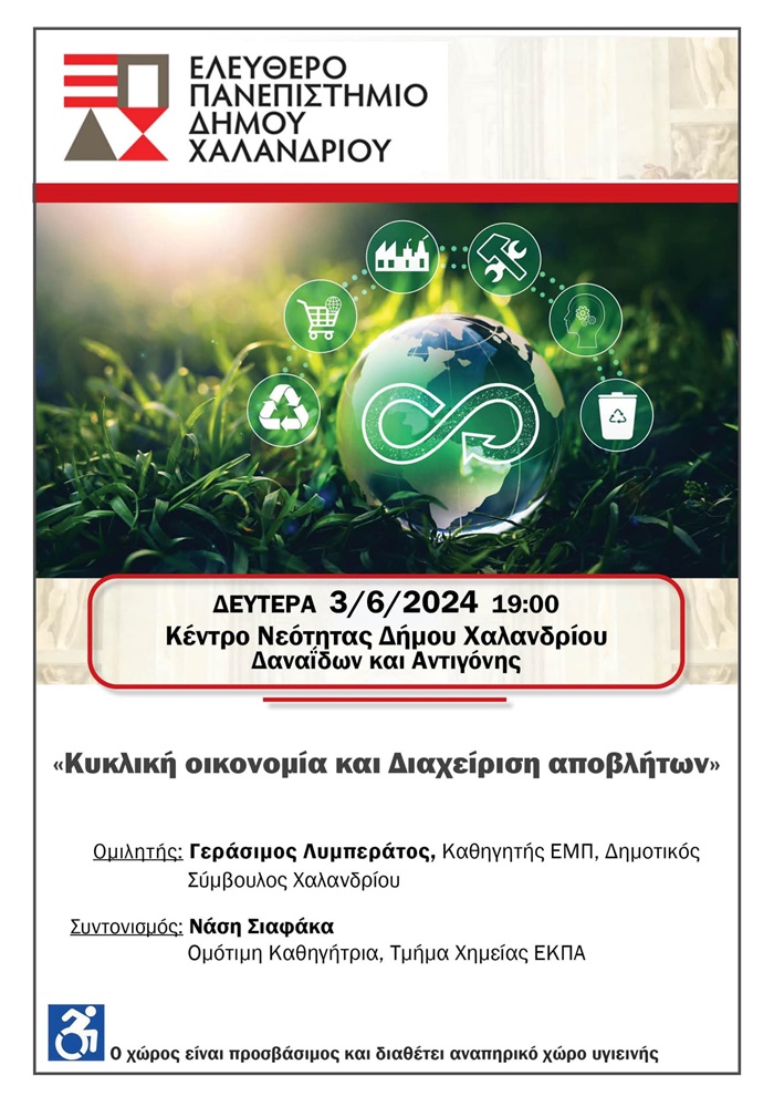 Ελεύθερο Πανεπιστήμιο Χαλανδρίου: Διάλεξη “Κυκλική οικονομία και διαχείριση αποβλήτων”