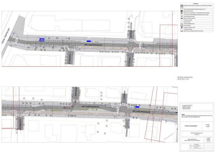 - Διαπλάτυνση πεζοδρομίων με εξασφάλιση των αναγκαίων χώρων στάθμευσης.