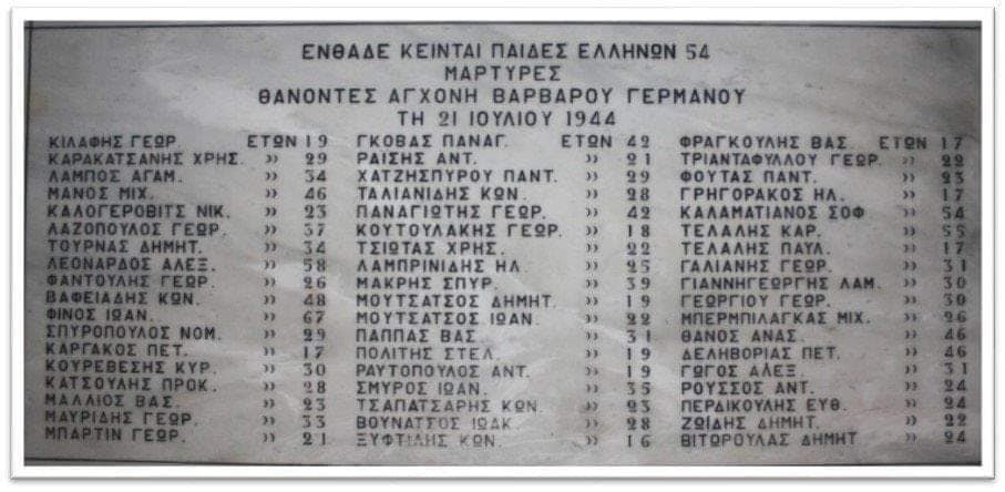 Φέτος συμπληρώνονται 80 ολόκληρα χρόνια από το αποτρόπαιο έγκλημα των Γερμανικών δυνάμεων και παράλληλα με τις άλλες μεγάλες επετείους, όπως της σφαγής του Διστόμου αλλά και της Απελευθέρωσης, οφείλουμε ως ελεύθεροι πολίτες και ως Έλληνες να σημάνουμε τον αγώνα ενάντια στη λήθη σε ολόκληρη την επικράτεια. Οφείλουμε να εναντιωθούμε τόσο στη λήθη όσο και στη στρέβλωση του παρελθόντος. Επομένως η παρουσία σας θα είναι σημαντική προκειμένου να διασφαλίσουμε την απρόσκοπτη συνέχιση του έργου της Αδελφότητας και τη διατήρηση της Μνήμης των Μαρτύρων μας όπως αγωνιζόμαστε ως ιδιωτικό σωματείο των οικογενειών από το 1945.