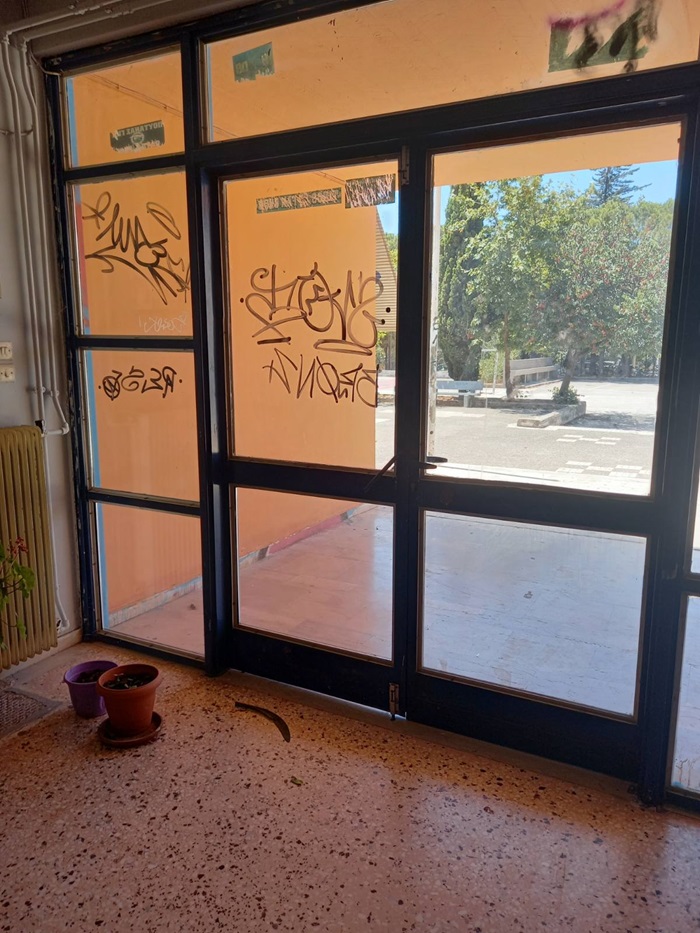 Κατά την θερινή εφημερία τους, στις 16/7/24, οι εκπαιδευτικοί του 4ου Γυμνασίου αντίκρισαν ένα αποτρόπαιο θέαμα: παραβιασμένη την κεντρική εξώπορτα στο ισόγειο, θρυμματισμένες τζαμαρίες στις αίθουσες διδασκαλίας, υβριστικά συνθήματα και προσβλητικά σκίτσα στους εσωτερικούς τοίχους, σε διαδρόμους και τουαλέτες... Πρόκειται για το αποκορύφωμα της καταστρεπτικής μανίας των εξωσχολικών, χρόνιο και δυσεπίλυτο πρόβλημα για όλους, φορείς, εκπαιδευτικούς, μαθητές και περίοικους.
