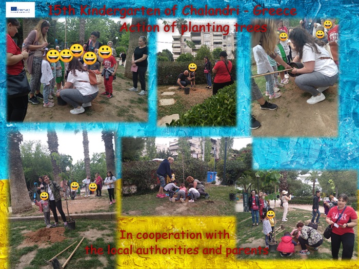 Το 15ο Νηπιαγωγείο Χαλανδρίου σε συνεργασία με το τμήμα Περιβάλλοντος του Δήμου Χαλανδρίου και τους γονείς των μαθητών όχι μόνο δημιούργησε ανθόκηπο στην αυλή του, αλλά πραγματοποίησε και δράση δενδροφύτευσης στο γειτονικό πάρκο, στο πλαίσιο υλοποίησης του Erasmus + προγράμματος “Ο Πλανήτης μας - Η ζωή μας”.
