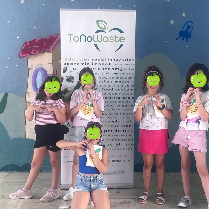Οι μικροί ήρωες της βιωσιμότητας, συμμετέχοντες και νικητές, έλαβαν θεματικά δώρα που υπενθυμίζουν τον στόχο της μείωσης της σπατάλης τροφίμων ως επιβράβευση των προσπαθειών τους.