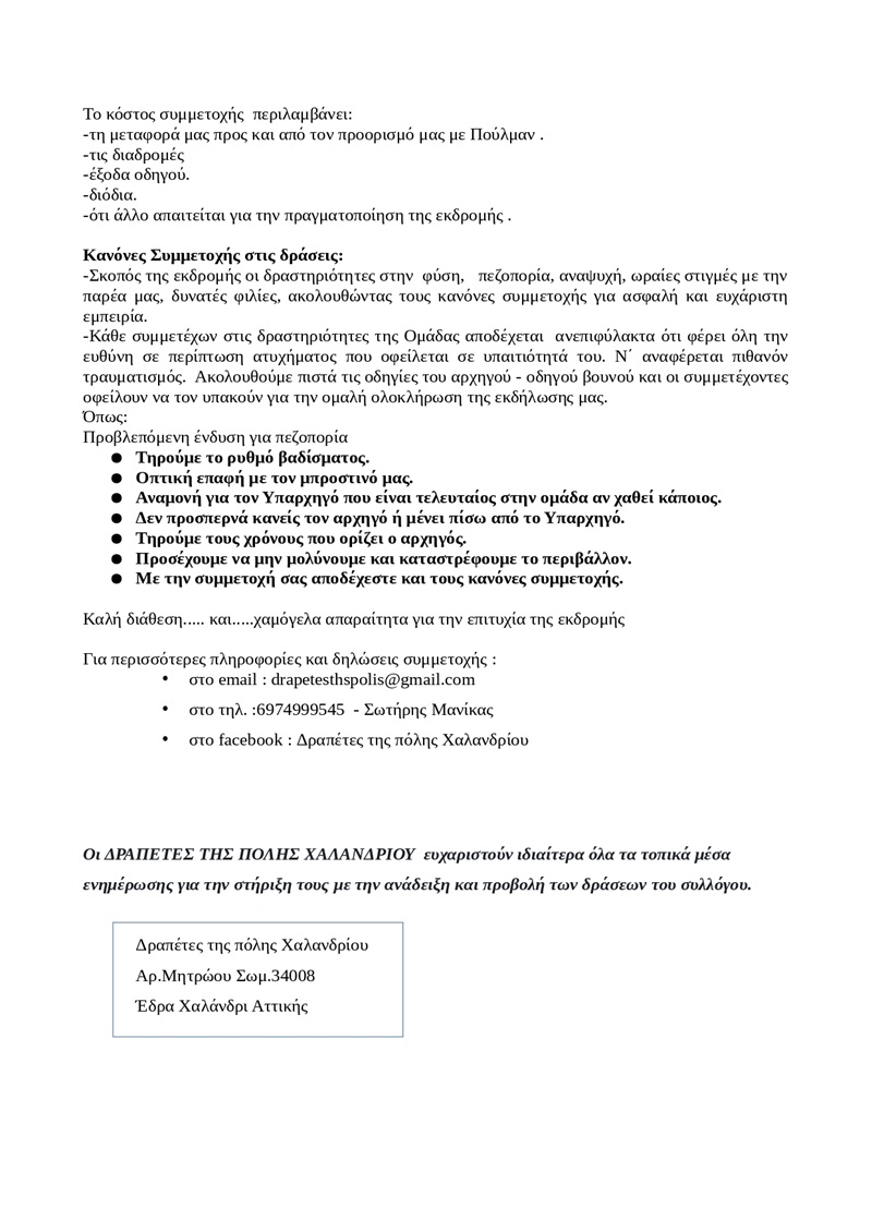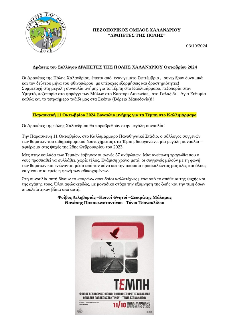 Οι “Δραπέτες της πόλης Χαλανδρίου” ανακοινώνουν τις δράσεις τους για τον μήνα Οκτώβριο 2024: