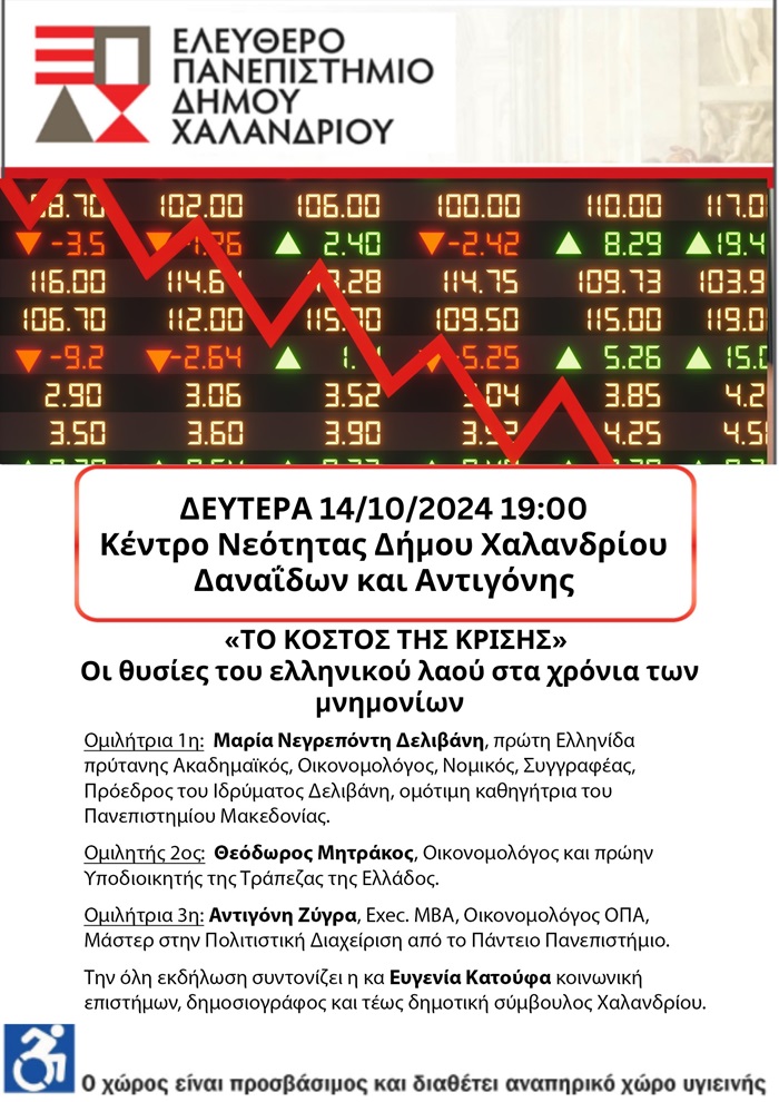 Ελεύθερο Πανεπιστήμιο Χαλανδρίου: Διάλεξη για το “Κόστος της κρίσης”