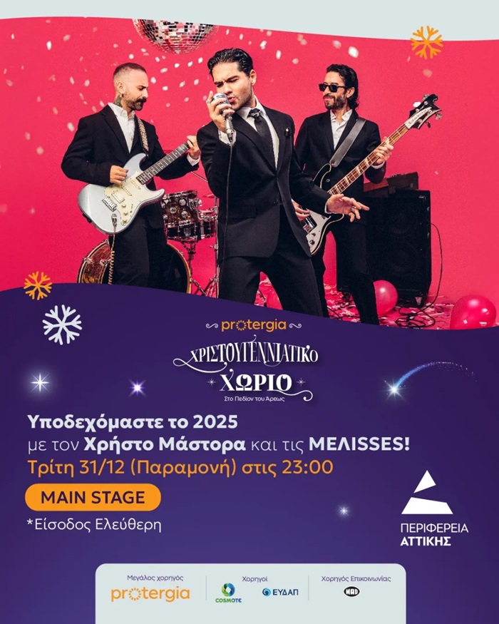 Με μια μεγάλη εορταστική συναυλία με αγαπημένα τραγούδια από τον Χρήστο Μάστορα και τις «Μέλισσες» κάνει «ποδαρικό» το 2025, στο Χριστουγεννιάτικο Χωριό της Περιφέρειας Αττικής στο Πεδίο του Άρεως.