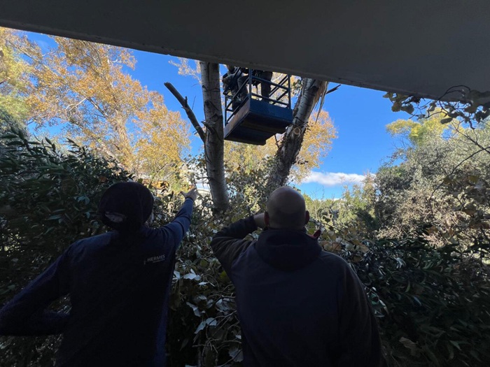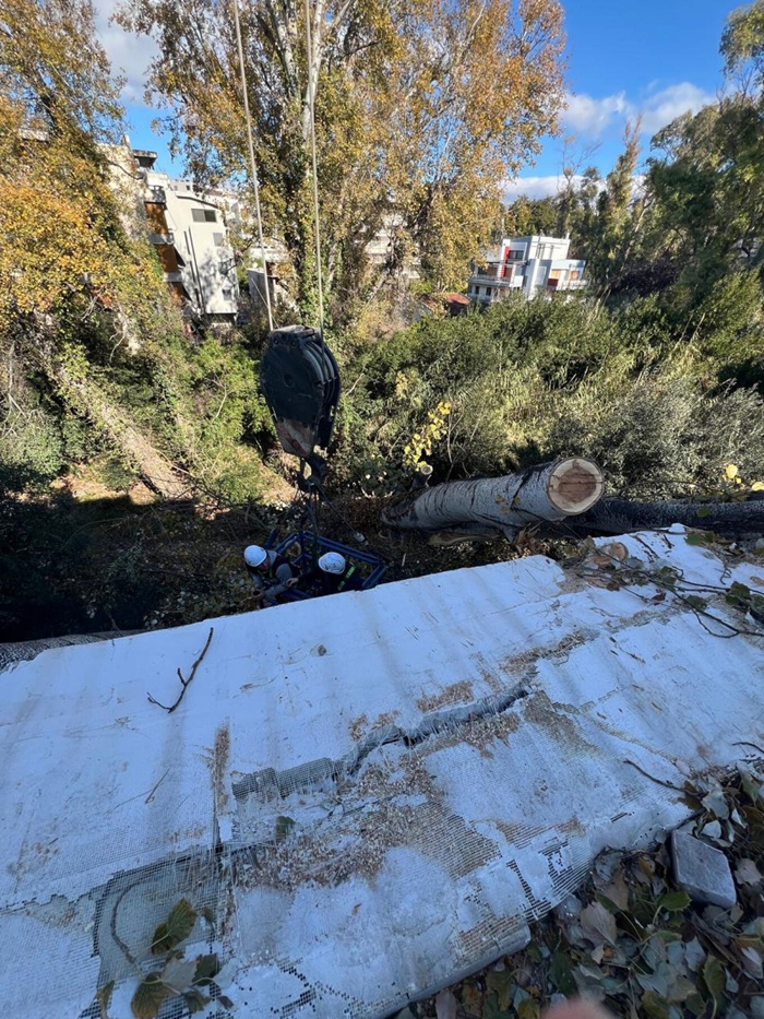 Για την απομάκρυνση του δέντρου στήθηκε μεγάλη επιχείρηση με γερανοφόρο όχημα