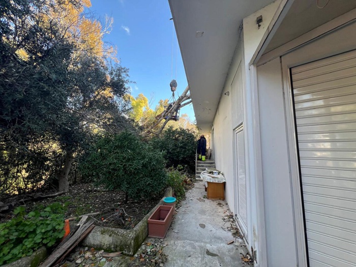 Λόγω της πτώσης του δέντρου έχουν προκληθεί σημαντικές υλικές ζημιές και στο σπίτι.