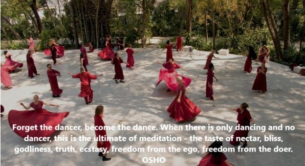 Ο OSHO με τους ενεργητικούς διαλογισμούς του εισάγει την έννοια της αφύπνισης μέσα από τη χαρά, την ελευθερία, την ελαφρότητα, την έκσταση. Παρομοιάζει το διαλογισμό με ένα χορό όπου ο χορευτής (ο νους - το Εγώ) εξαφανίζεται, διαλύεται, γίνεται ένα με τον χορό.