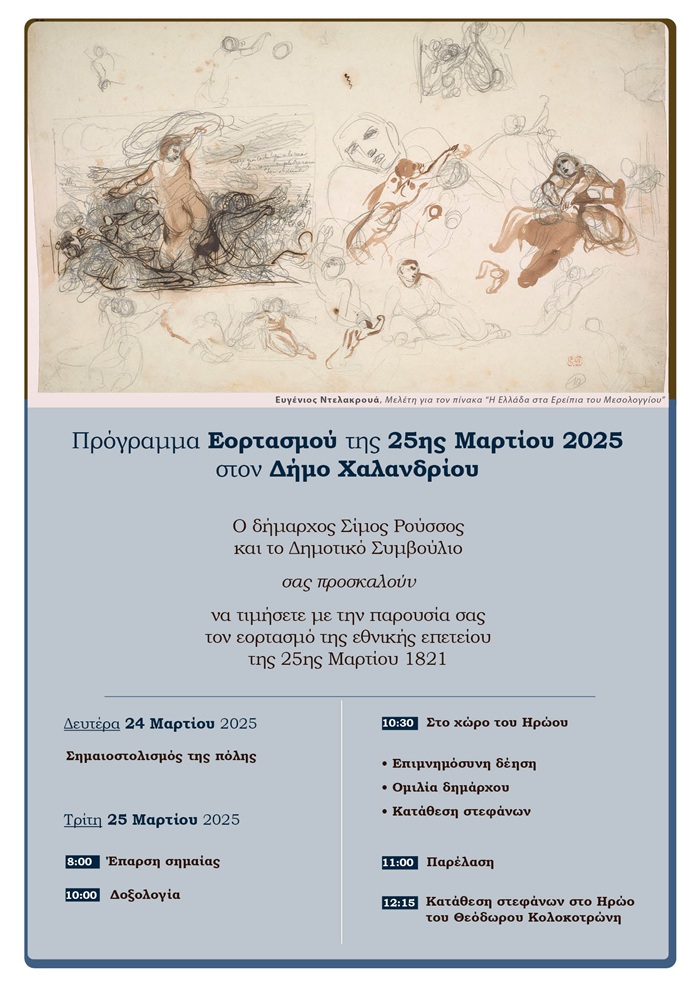 To πρόγραμμα για τον εορτασμό της Εθνικής Επετείου της 25ης Μαρτίου στον Δήμο Χαλανδρίου
