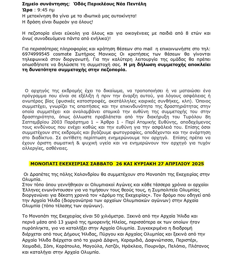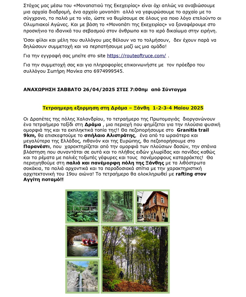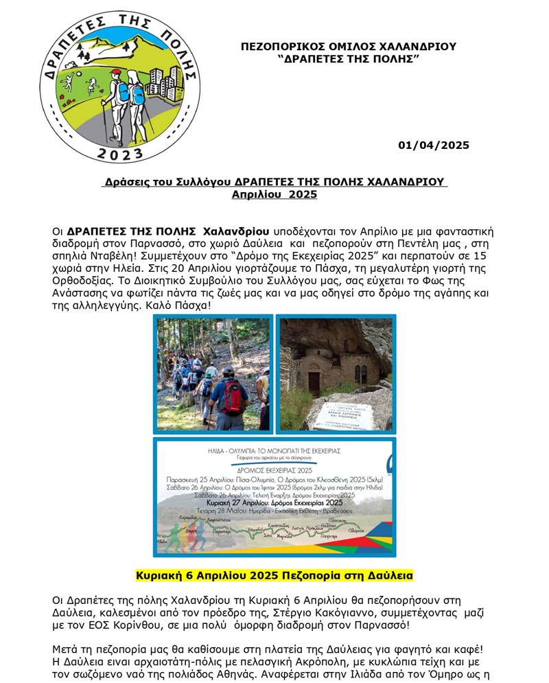 Οι “Δραπέτες της πόλης Χαλανδρίου” ανακοινώνουν τις δράσεις τους για τον μήνα Απρίλιο 2025: