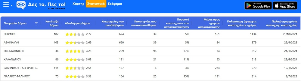 - Προχωρά, τέλος, σε δημόσια αξιολόγηση των δήμων, με βάση τον αριθμό των αιτημάτων που δεν έχουν διεκπεραιωθεί, πλήττοντας έτσι βάναυσα τη φήμη και την αξιοπιστία των δήμων που αρνούνται να ανταποκριθούν στο αίτημά της πλατφόρμας, προσθέτοντας, έτσι, ένα ακόμα λιθαράκι στην επιχειρούμενη, συστηματικά το τελευταίο διάστημα, απαξίωση της Τοπικής Αυτοδιοίκησης. Σημειώνεται ότι α) η εν λόγω πλατφόρμα ΔΕΝ είναι πιστοποιημένος φορέας αξιολόγησης β) κάνει παρ’ όλα αυτά δημόσια αξιολόγηση, χωρίς να διαθέτει το μηχανισμό που να επιβεβαιώνει ποια αιτήματα επιλύθηκαν, παρά απαιτώντας από τους υπαλλήλους των δήμων να δηλώνουν τα διεκπεραιωμένα. Ακόμα χειρότερα, αξιολογεί -βάσει τεχνητής νοημοσύνης κατά ομολογία του ιδιοκτήτη- βάζοντας στο ίδιο καλάθι αιτήματα διαχείρισης καθημερινότητας, όπως η αποκομιδή κλαδεμάτων για παράδειγμα, μαζί με αιτήματα -που είναι και τα περισσότερα όπως προκύπτει από μια πρώτη έρευνα- που μπορεί να αφορούν σε μονοδρομήσεις, πεζοδρομήσεις, τοποθετήσεις φαναριών -θέματα που αφενός απαιτούν πιο μακροχρόνιο σχεδιασμό και που αφετέρου μπορεί να μην ανήκουν καν στην αρμοδιότητα του Δήμου. Το αποτέλεσμα όμως δεν μεταβάλλεται. Η τεχνητή νοημοσύνη θα τα περάσει στα μη διεκπεραιωμένα και θα προχωρήσει στην αξιολόγηση - βαθμολόγηση του δήμου, ουσιαστικά στη δυσφήμισή του.