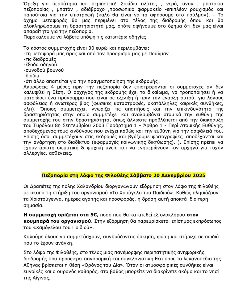 Οι “Δραπέτες της πόλης Χαλανδρίου” ανακοινώνουν τις δράσεις τους για τον μήνα Δεκέμβριο 2025: