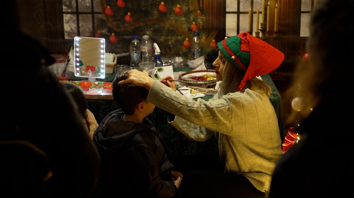 Animateurs διασκέδασαν τα παιδιά, πυροτεχνήματα φώτισαν τον ουρανό ενώ μοιράστηκαν γλυκίσματα και ζεστό κρασί.