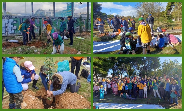 Μαζί φυτέψαμε περίπου 160 δενδρύλλια δασικών φυτών της Αττικής (βελανιδιές, αριές χαρουπιές, κουτσουπιές, κυπαρίσσια, κουμαριές, πικροδάφνες, κ.ά.) στο πλαίσιο μιας δράσης με διπλό στόχο: αφενός το πρασίνισμα του χώρου και αφετέρου την ευαισθητοποίηση μικρών και μεγάλων για την ανάγκη προστασίας του περιβάλλοντος.