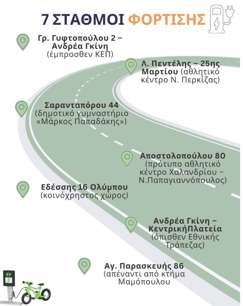 Οι επτά (7) σταθμοί φόρτισης έχουν εγκατασταθεί στα εξής σημεία: