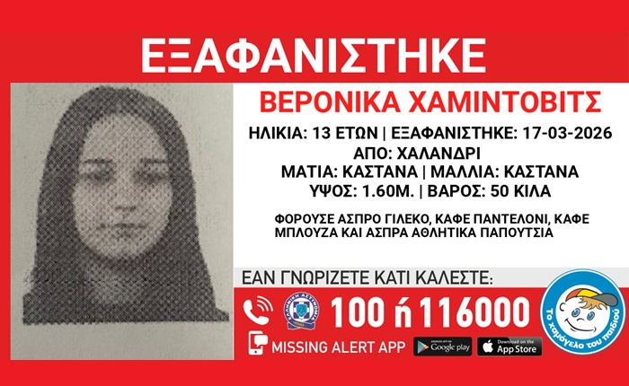 «Το Χαμόγελο του Παιδιού» ενημερώνει για την εξαφάνιση της 13χρονης Βερόνικα Χαμίντοβιτς από το Χαλάνδρι: