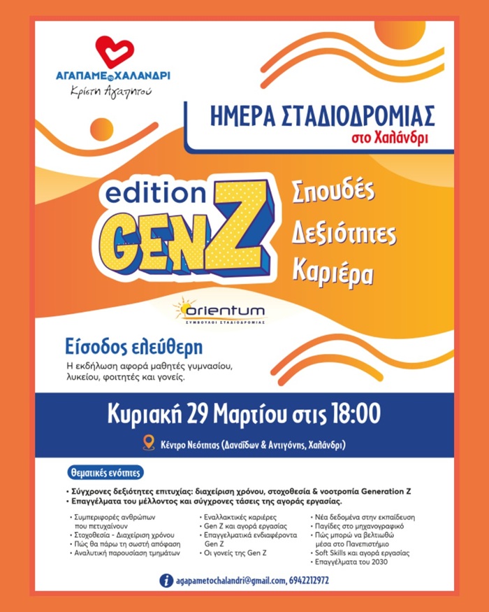 Η Ημέρα Σταδιοδρομίας – edition Gen Z, σε συνεργασία με την Orientum, την κορυφαία εταιρεία επαγγελματικού προσανατολισμού στην Ελλάδα, απευθύνεται σε μαθητές, φοιτητές, αλλά και γονείς, και φιλοδοξεί να δώσει απαντήσεις σε πραγματικά ερωτήματα της νέας γενιάς: