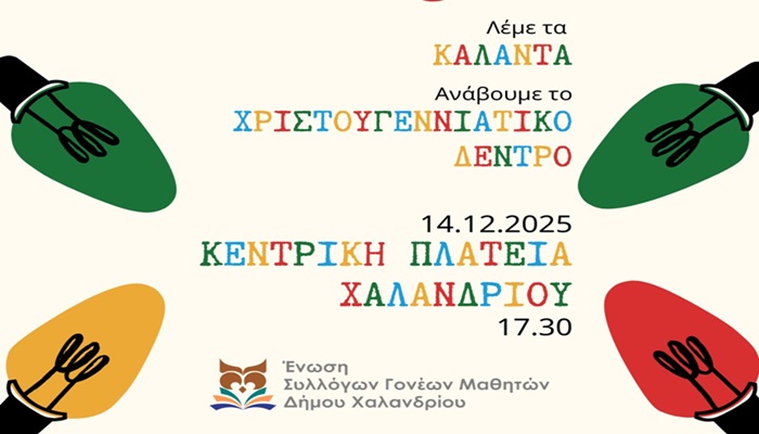 Η Ένωση Συλλόγων Γονέων Μαθητών Χαλανδρίου σας προσκαλεί σε μια χριστουγεννιάτικη δράση στην καρδιά της πόλης: