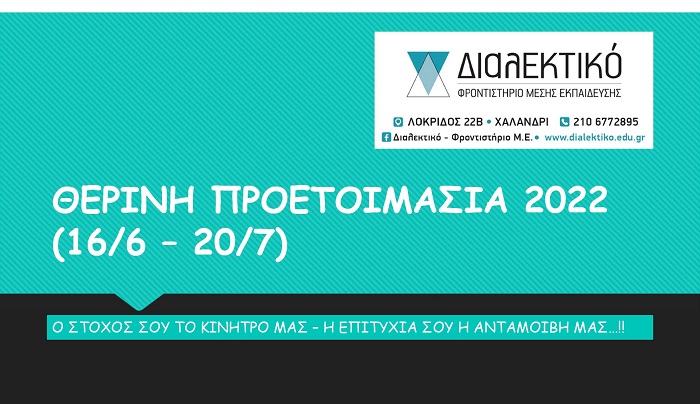 Συνεχίζονται οι εγγραφές για τα θερινά μαθήματα στο Διαλεκτικό - Φροντιστήριο Μέσης Εκπαίδευσης!