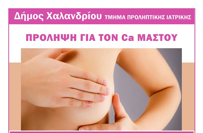 Δωρεάν προληπτικό διαγνωστικό έλεγχο για τον καρκίνο του μαστού προσφέρει το Τμήμα Προληπτικής Ιατρικής του Δήμου Χαλανδρίου σε συνεργασία με