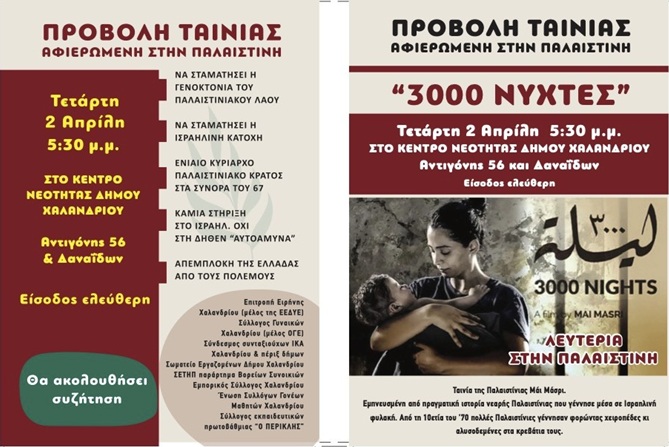 8 φορείς του Χαλανδρίου διοργανώνουν την προβολή της ταινίας «3000 νύχτες».