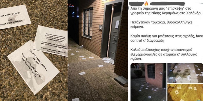 Επίθεση με τρικάκια με απειλητικό περιεχόμενο εξαπέλυσαν άγνωστοι στο πολιτικό γραφείο της υπουργού Παιδείας Νίκης Κεραμέως.