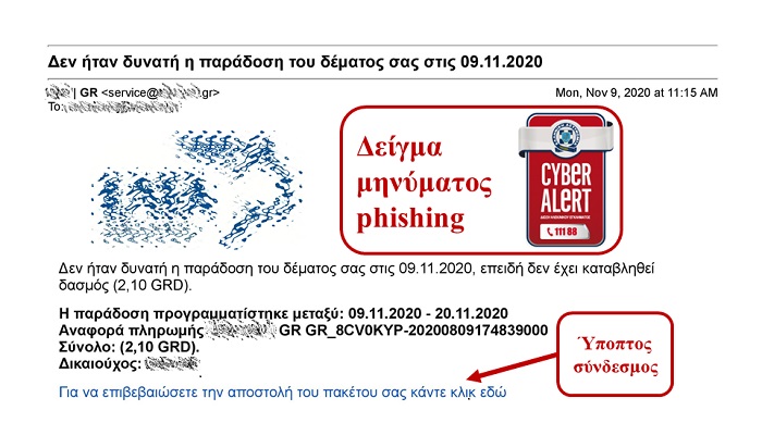 Η Διεύθυνση Δίωξης Ηλεκτρονικού Εγκλήματος ενημερώνει τους πολίτες σχετικά με προσπάθειες υποκλοπής δεδομένων προσωπικού χαρακτήρα μέσω “ηλεκτρονικού ψαρέματος” (phishing)