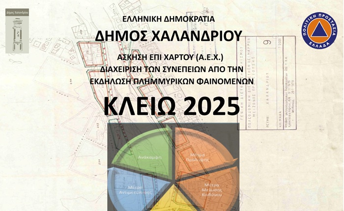 Το Τμήμα Πολιτικής Προστασίας του Δήμου Χαλανδρίου σε συνεργασία με το Υπουργείο Κλιματικής Κρίσης και Πολιτικής Προστασίας διοργανώνει Άσκηση Επί