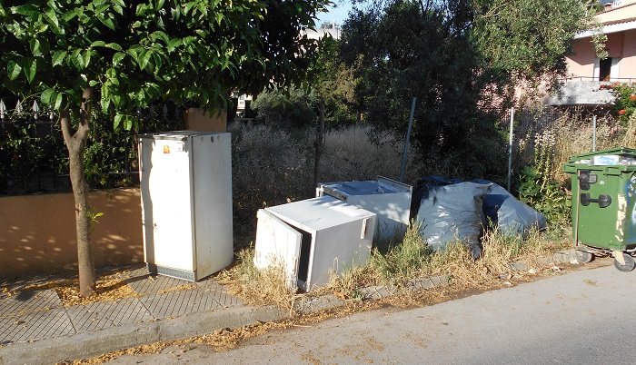 Μετά τα κλαδιά και τα μπάζα, σειρά έχουν οι οικιακές συσκευές, που ασυνείδητοι εναπόθεσαν σε πεζοδρόμιο της οδού Κέας στο Χαλάνδρι.
