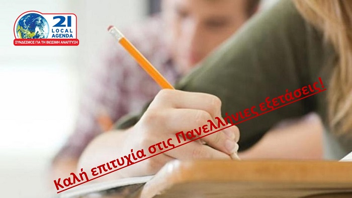 Ο πρόεδρος του Συνδέσμου για τη Βιώσιμη Ανάπτυξη των Πόλεων, Γιώργος Κουράσης, εύχεται από καρδιάς κάθε επιτυχία στους μαθητές και τις μαθήτριες που συμμετέχουν στις φετινές Πανελλήνιες εξετάσεις!