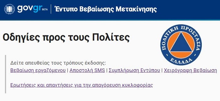 Από τη Δευτέρα 23 Μαρτίου 2020 στις 6:00 π.μ. τίθεται σε ισχύ η απαγόρευση κάθε άσκοπης κυκλοφορίας και μετακίνησης πολιτών