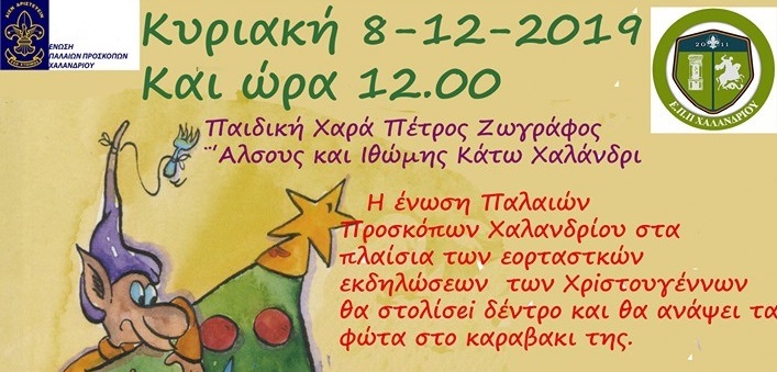 Η Ένωση Παλαιών Προσκόπων Χαλανδρίου, στα πλαίσια των εορταστικών εκδηλώσεων των Χριστουγέννων, θα στολίσει δέντρο και θα ανάψει τα φώτα