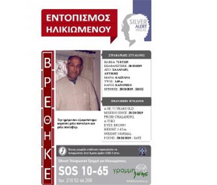 Βρέθηκε σώος ο ηλικιωμένος που είχε εξαφανιστεί από το Χαλάνδρι