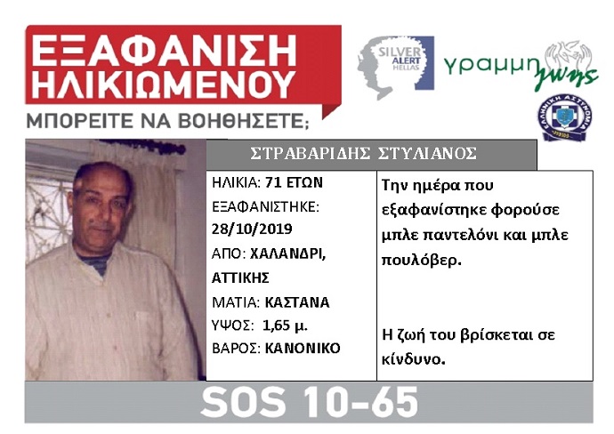 Υπάρχει εξαφάνιση του 71χρονου Στυλιανού Στραβαρίδη από την περιοχή