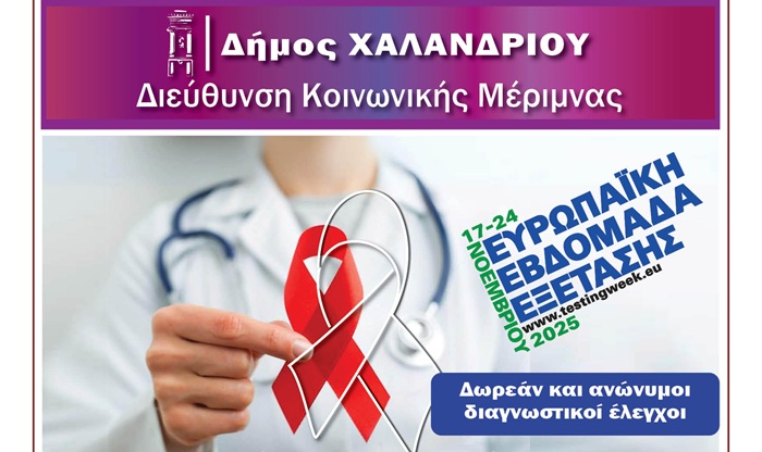 Δράση ενημέρωσης και πρόληψης για τον HIV πραγματοποιεί ο Δήμος Χαλανδρίου, σε συνεργασία με τον Εθνικό Οργανισμό Δημόσιας Υγείας (ΕΟΔΥ)