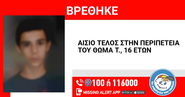 ΑΙΣΙΟ ΤΕΛΟΣ ΣΤΗΝ ΠΕΡΙΠΕΤΕΙΑ ΤΟΥ ΘΩΜΑ Τ., 16 ΕΤΩΝ