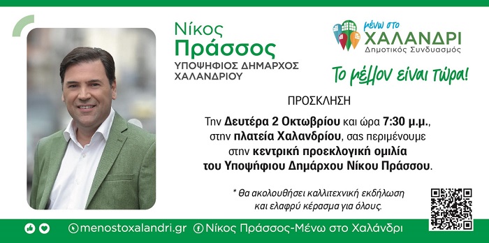 Ανακοίνωση της Λαϊκής Συσπείρωσης Χαλανδρίου σχετικά με την κεντρική προεκλογική της συγκέντρωση ενόψει των δημοτικών και περιφερειακών εκλογών: Με μεγάλη επιτυχία πραγματοποιήθηκε την Παρασκευή 29/9 η κεντρική προεκλογική συγκέντρωση της