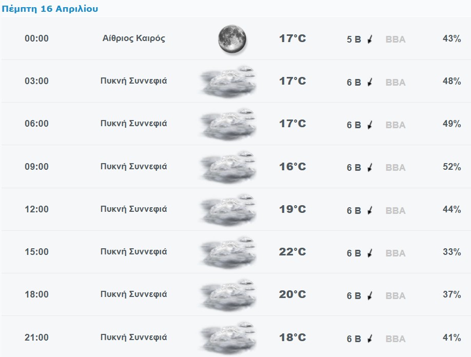 Πρόγνωση καιρού για το Χαλάνδρι: Πέμπτη 16/4/2026