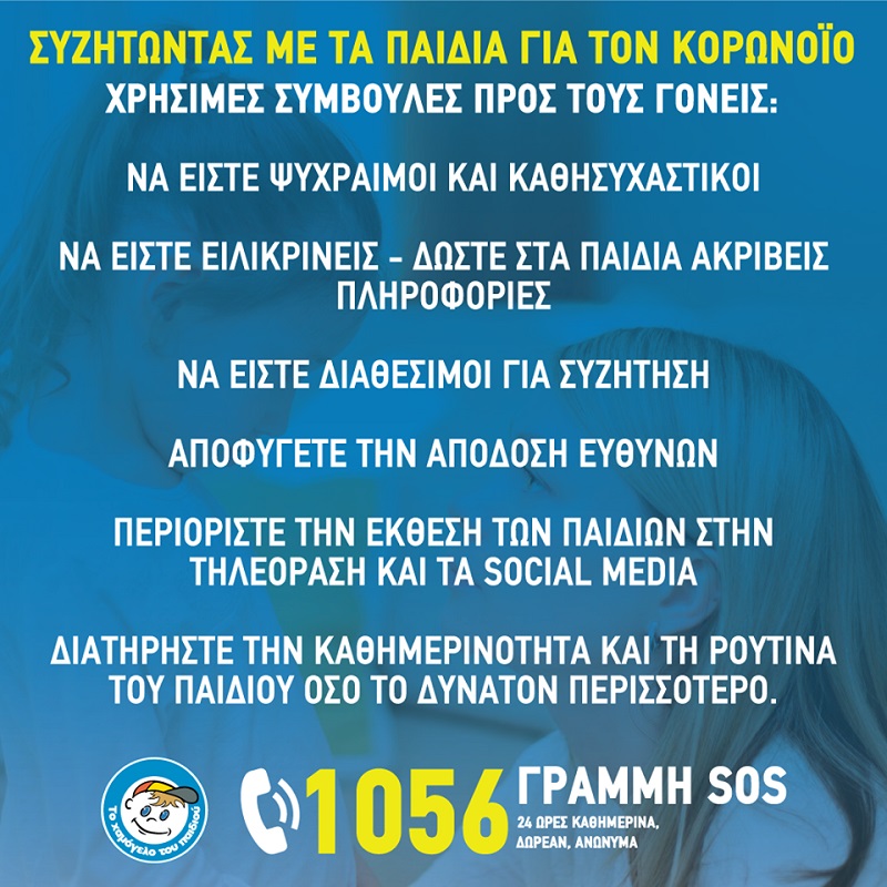 Συζητώντας με τα παιδιά για τον κορωνοϊό: Χρήσιμες συμβουλές προς τους γονείς από το “Χαμόγελο του Παιδιού”