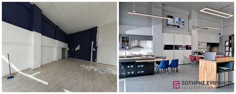 Η φωτογράφιση που γίνεται πάντα πριν και μετά την ανακαίνιση αποδεικνύει ότι ένας χώρος μπορεί εντελώς να μεταμορφωθεί όταν υπάρχει ο κατάλληλος σχεδιασμός από επαγγελματίες. Στη συνέχεια ακολουθούν φωτογραφίες με το Πριν και Μετά αποτέλεσμα μετά από μια ανακαίνιση καταστήματος στον Αλιμο από την εταιρεία Σωτήρης Ευθυμίου που εδρεύει στον Χολαργό (στα σύνορα με Χαλάνδρι).