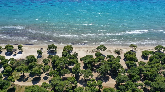 Σε απόσταση 50 χιλιομέτρων, κάτι παραπάνω από μία ώρα από το Σύνταγμα, βρίσκεται μία από τις ομορφότερες περιοχές φυσικού κάλλους στην Ελλάδα. Σε αυτήν την αχανή παραλία υπάρχει το οργανωμένο κομμάτι, με τις ξαπλώστρες τα beach bar και τις δυνατότητες για θαλάσσια σπορ όπως SUP. Αλλά σας προτείνουμε, έστω δοκιμαστικά, να προτιμήσετε το ανοργάνωτο και να κάνετε μπάνιο στο παραλιακό κομμάτι που έχει στην πλάτη του το δάσος με τις κουκουναριές. Αφήστε το αυτοκίνητο σχετικά μακριά, αφενός, γιατί μπορεί να κολλήσουν οι ρόδες του στην άμμο κυρίως, όμως, για να παρέμβετε ελάχιστα σε αυτό το υπέροχο οικοσύστημα και περπατήστε μέσα στο Εθνικό Πάρκο, ανάμεσα στις κουκουναριές που φτάνουν πολύ κοντά στη θάλασσα.