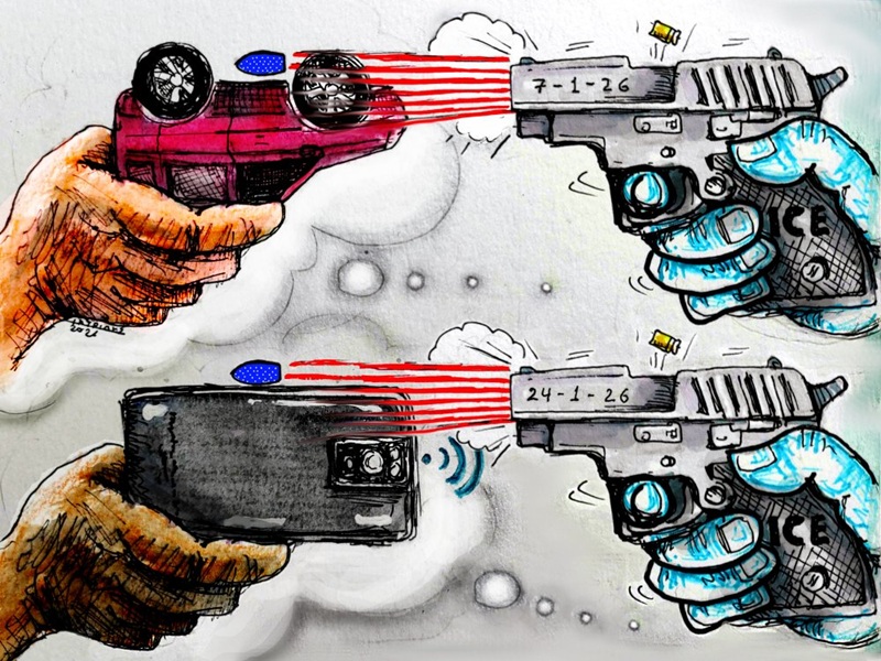 Ο ICE σκοτώνει ανθρώπους στην Αμερική. Σκίτσο του Πάνου Ιατρίδη