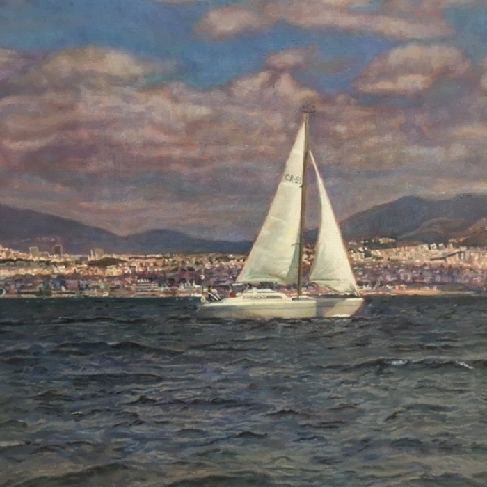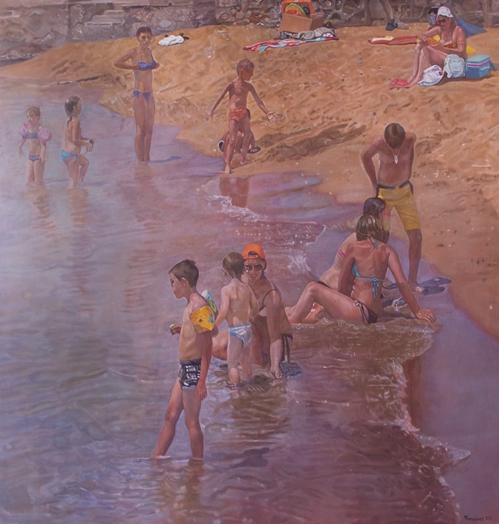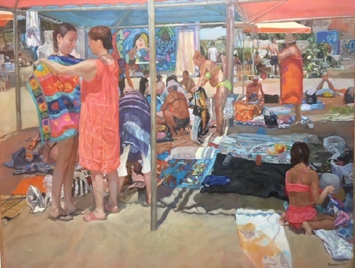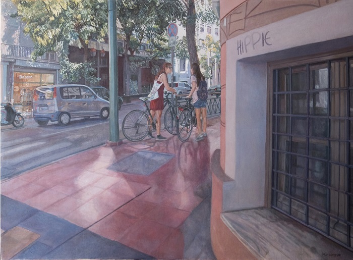Οι γοητευτικές σκηνές αγνώστων που με προκαλούν να τις ζωγραφίσω μετά από ένα ζωγραφικό αδιέξοδο, οριακό ίσως, χωρίς προαποφασισμένα θέματα, τα θέματά μου φανερώνονται αβίαστα.