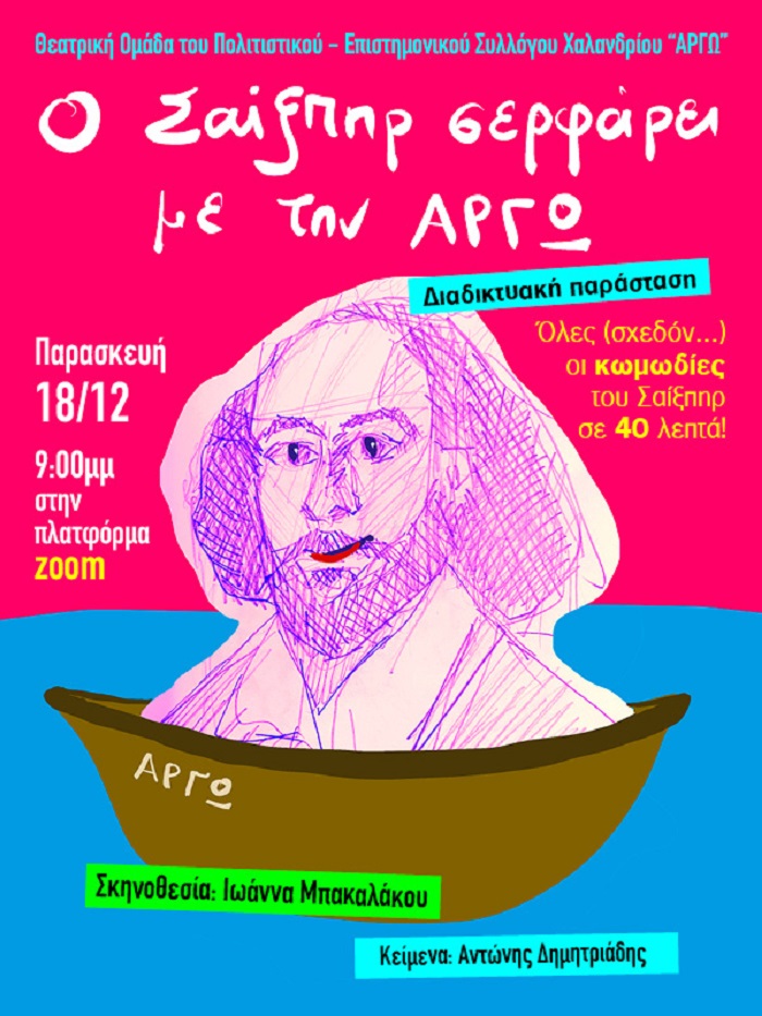 Σύλλογος Χαλανδρίου ΑΡΓΩ: Διαδικτυακή παράσταση “Ο Σαίξπηρ σερφάρει με την Αργώ”