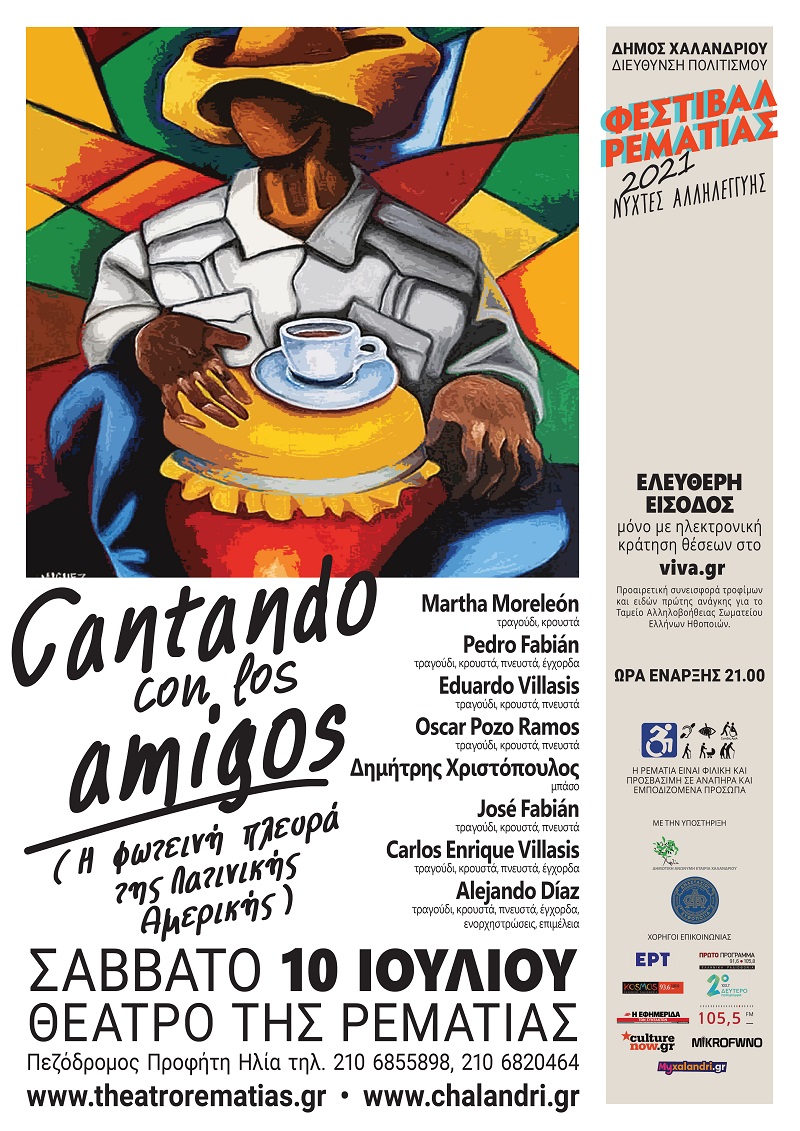 Τη συναυλία “Cantando con los amigos” παρουσιάζει το Φεστιβάλ Ρεματιάς 2021 “Νύχτες Αλληλεγγύης”, το Σάββατο 10 Ιουλίου, με τον Alejandro Diaz και άλλους φίλους της Ρεματιάς, να τραγουδούν τη φωτεινή πλευρά της Λατινικής Αμερικής.