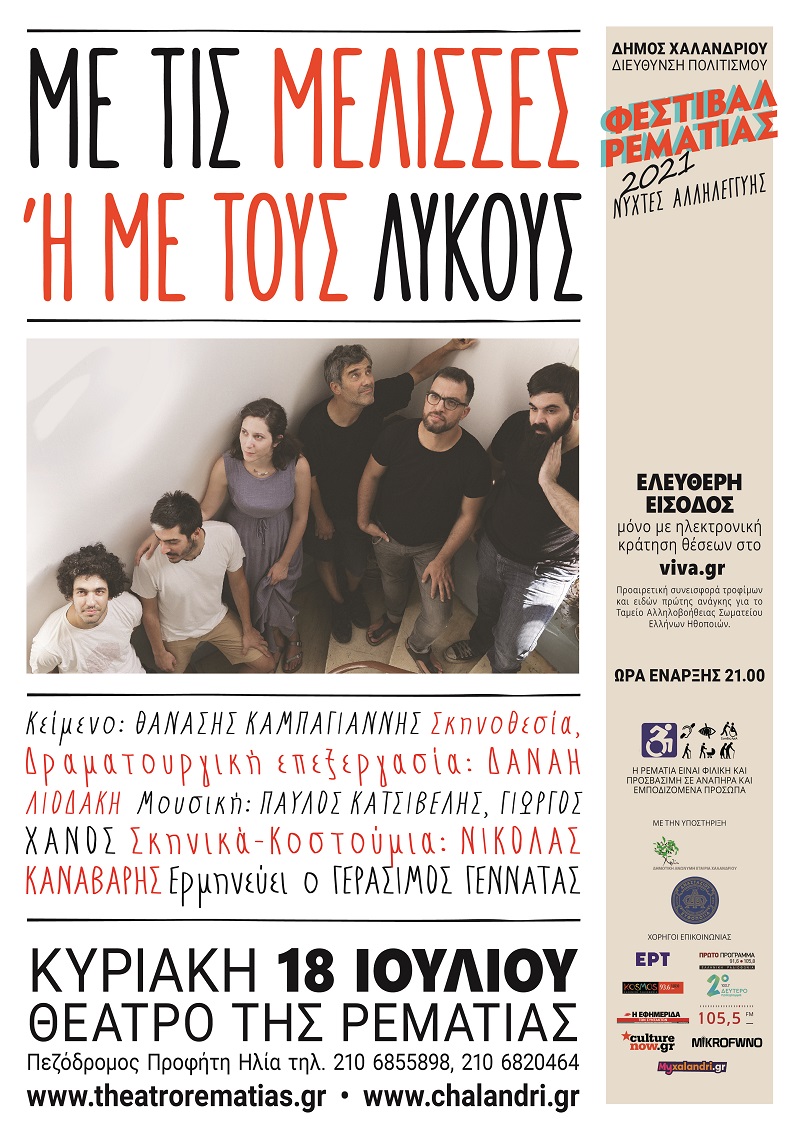 Την προσβάσιμη στο περιεχόμενο παράσταση “Με τις μέλισσες ή με τους λύκους”, η οποία αποτελεί την καλλιτεχνική προσπάθεια απόδοσης της αγόρευσης του Θανάση Καμπαγιάννη, συνηγόρου πολιτικής αγωγής στην πολυσυζητημένη δίκη της Χρυσής Αυγής, φιλοξενεί το Φεστιβάλ Ρεματιάς 2021 “Νύχτες Αλληλεγγύης”, την Κυριακή 18 Ιουλίου.