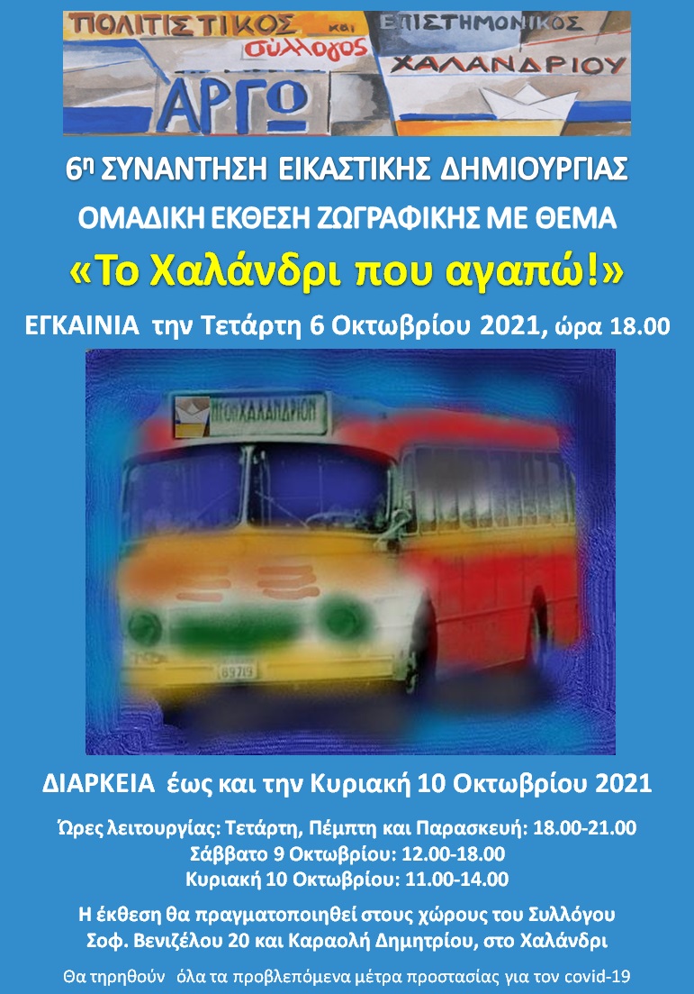 Η έκθεση θα πραγματοποιηθεί στους χώρους του Συλλόγου (Σοφοκλή Βενιζέλου 20 & Καραολή-Δημητρίου, Χαλάνδρι).