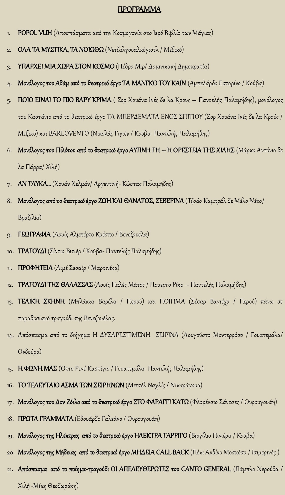 “Θεοί και Αποχαιρετισμοί - Η Λατινική Αμερική στη φωνή μου”, από τη Βενεζουέλα στο Χαλάνδρι