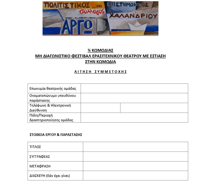 Σύλλογος Χαλανδρίου ΑΡΓΩ: ¼ Κωμωδίας - Φεστιβάλ Ερασιτεχνικού Θεάτρου και Πολιτιστικό Διήμερο